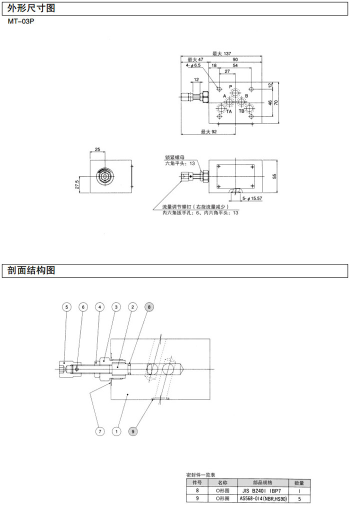 叠加式单向节流阀MSW-01-X-50,MSW-01-Y-50,MSW-02-X-50,MSW-02-Y-50,MSW-03-X-50,MSW-03-Y-50,MSW-04-X-50,MSW-06-X-50,