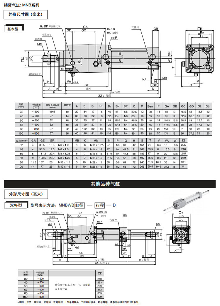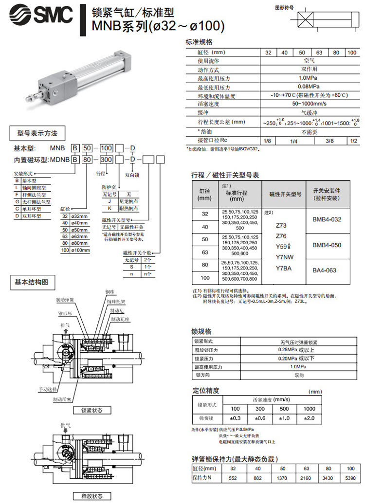 MDNBB32-25,MDNBL32-25,MDNBF32-25,MDNBG32-25,MDNBD32-25,MDNBB32-50,MDNBL32-50,SMC标准型锁紧气缸