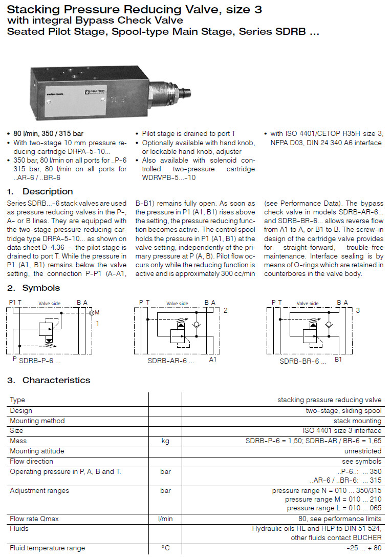 SDRB-AR-6-SN,SDRB-PR-6-HN,SDRB-BR-6-ZN,SDRB-AR-6-SL,SDRB-PR-6-ZL,Bucher减压阀