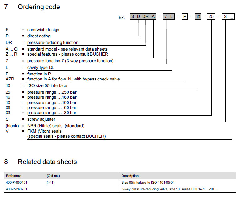 SDDRA-7L-P-10-25,SDDRA-7L-P-10-16,SDDRA-7L-P-10-06,SDDRA-7L-P-10-10,Bucher减压阀