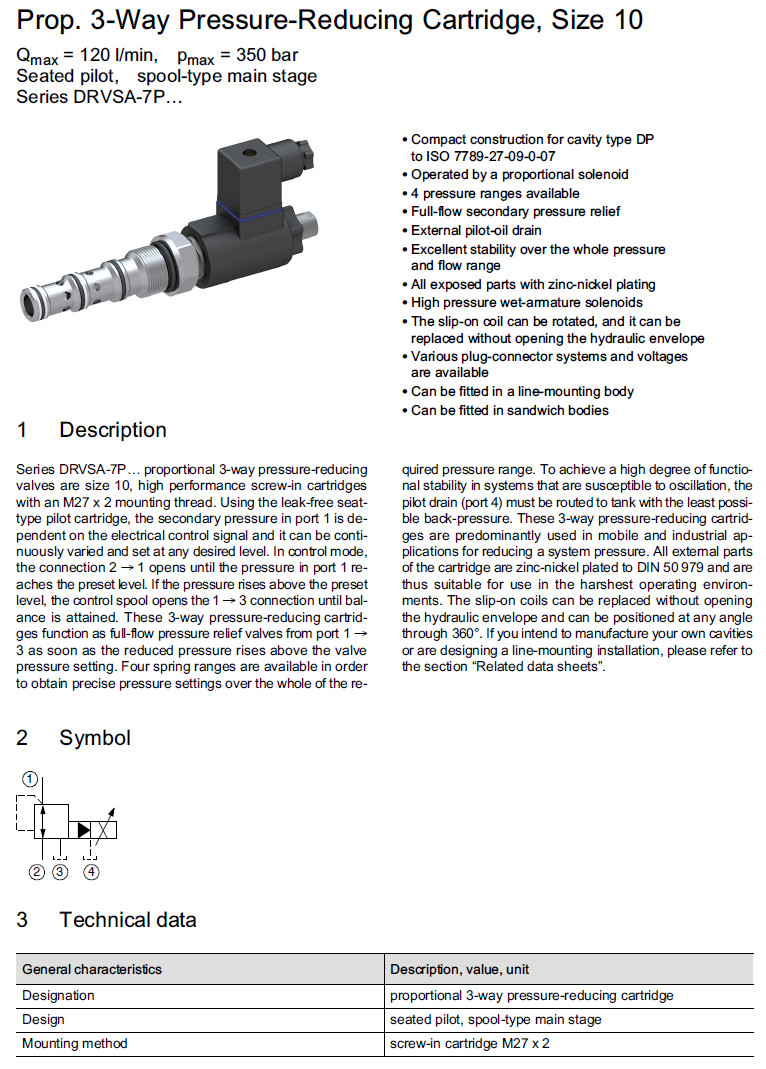 DRVSA-7P-350,DRVSA-7P-250,DRVSA-7P-160,DRVSA-7P-100,Bucher减压阀