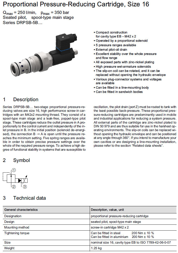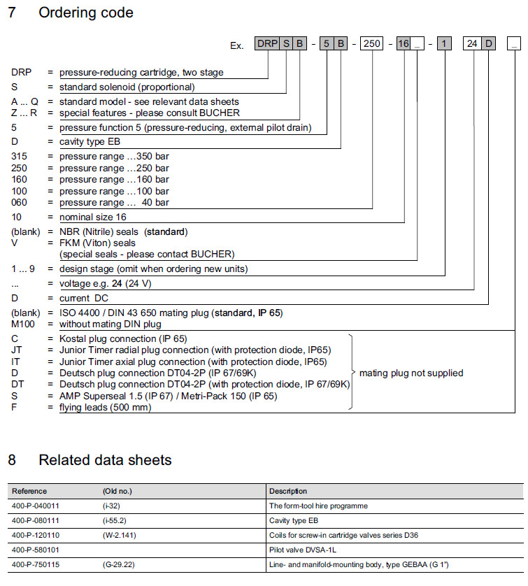 DRPSB-5B-315,DRPSB-5B-250,DRPSB-5B-160,DRPSB-5B-100,DRPSB-5B-060,Bucher减压阀